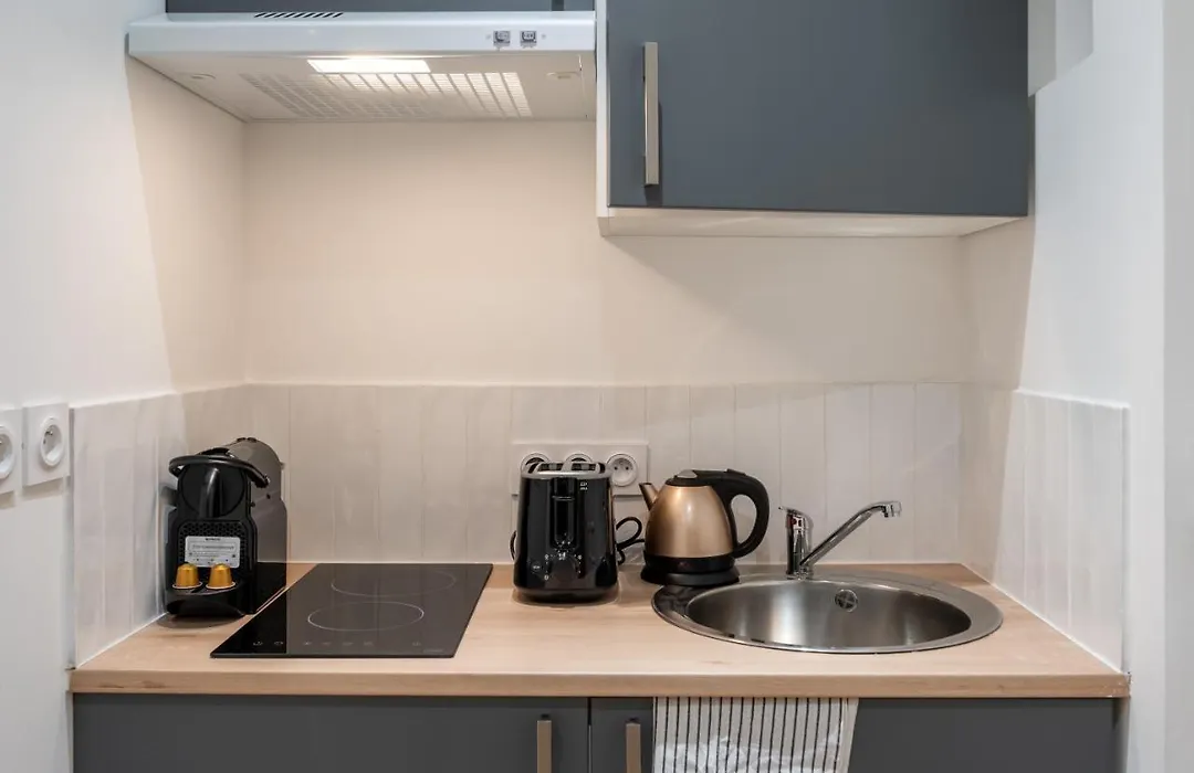 The rooms at the apartment feature a work desk, coffee and tea making facilities, and soundproof windows. Feather pillows, down pillows and linens as well as bath sheets, a hair dryer and towels are included in the rooms.